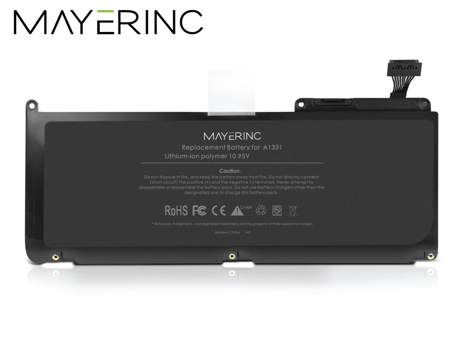 Mayerinc A1331 accu’s zijn milieuvriendelijk en voldoen bovendien aan de strengste veiligheidsvoorschriften. Mayerinc accu’s zijn RoHs gecertificeerd. RoHs houdt in dat geproduceerde accu’s vrij van lood, kwik cadmium, Chroom VI, PBB’s en PBDE zijn. Lees meer over Mayerinc op www.mayerinc.nl.