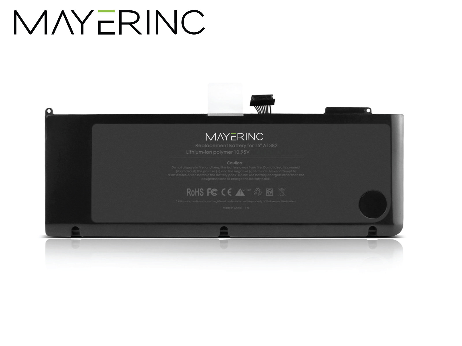 Plaats nu de nieuwe Mayerinc A1382 accu en ga in omgekeerde volgorde te werk. Nadat u de bodemplaat heeft vastgezet kunt u de MacBook Pro weer opstarten en bent u klaar.